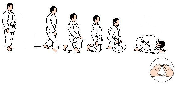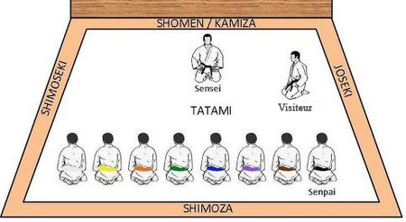 L'emplacement du Sensei se trouve face aux élèves en ligne, au milieu de la pièce, pour le Zarei qui se déroule au début et à la fin du cours.